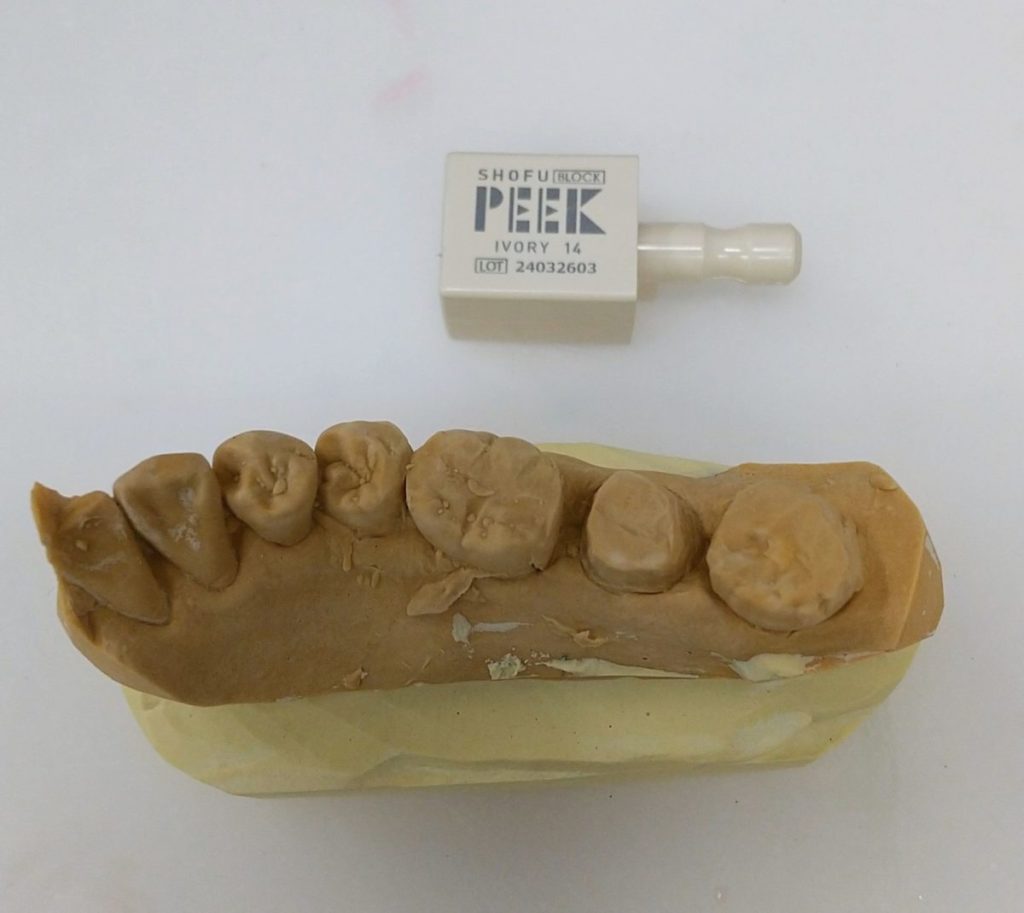 PEEK(ポリエーテルケトン)を使用したCAD/CAMの修復樹脂材料です。